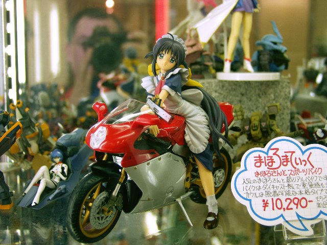 Hmmm... teenage maids who ride bikes and carry big guns... One of several model shops in Nagoya train station.