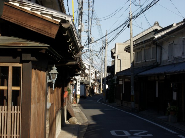 Side streets in old Kurashiki heading towards the hill-top temple.