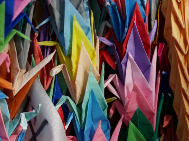 Paper cranes that are delivered in the thousands to remember Sasaki Sadako and other victims of the bombing.