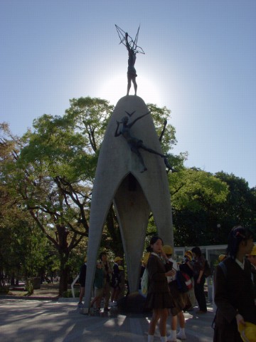 Monument to Sasaki Sadako, a 12 year old victim of radiation induced leukaemia.