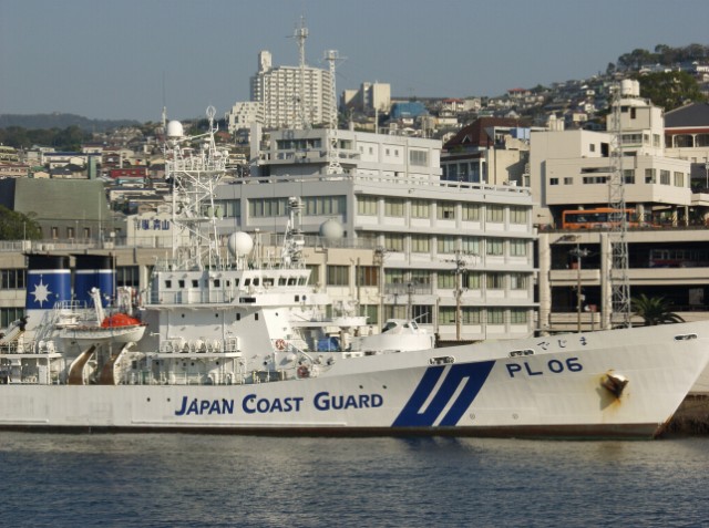 Japanese Coast Guard ships docked in the harbour.