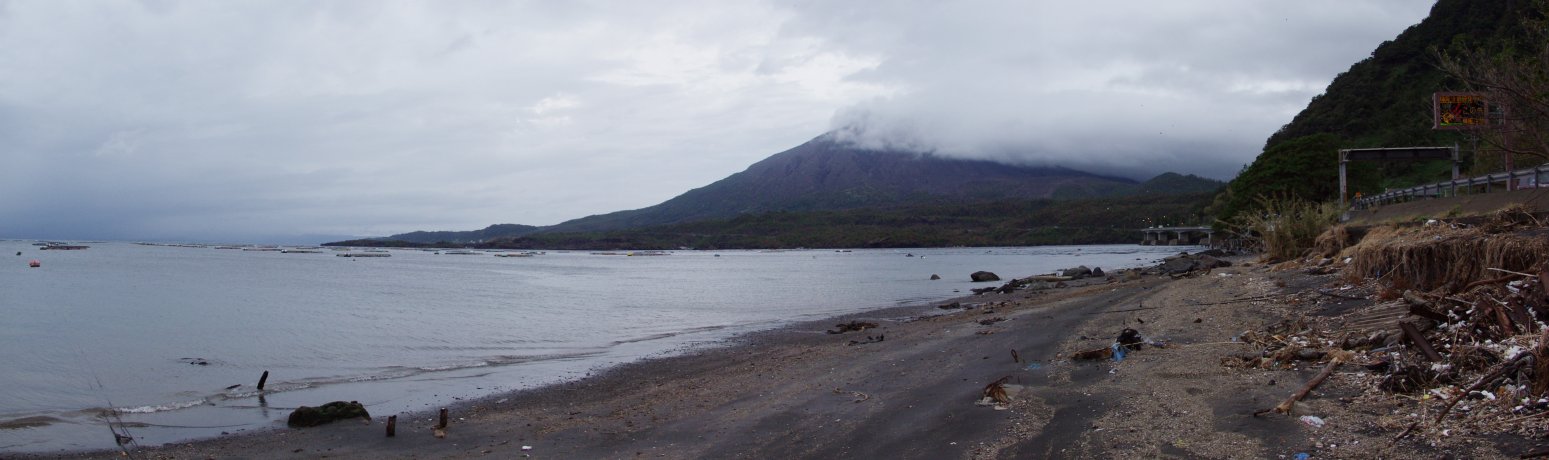 A beach just near the causeway. The first place in Japan that I've seen litter. Also where we found a water-logged Sea Eagle.