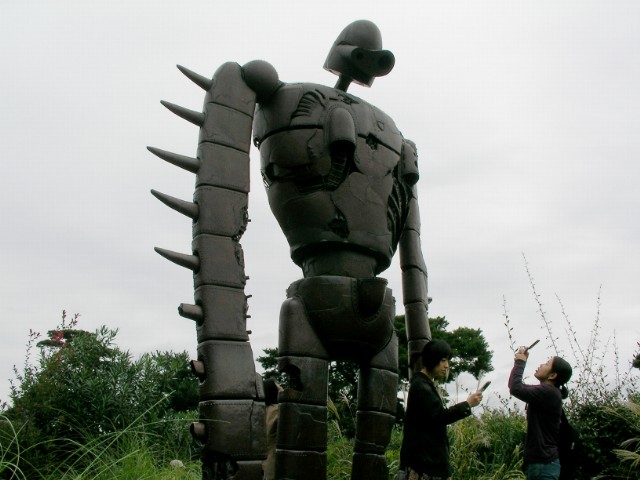 Where on the roof is a life-size statue of a Laputian Robot from the movie "Castle in the Sky".