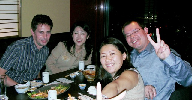 From left to right - Antony, Rie, Megumi and me. Dinner on the 50th floor of an office block!