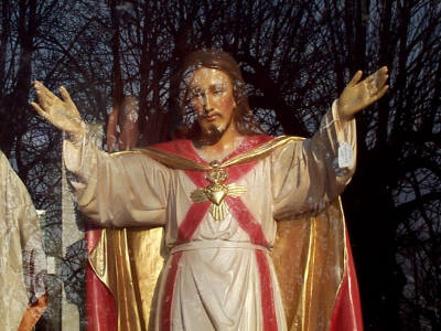 Olympus C-1400L I'm not actually religious but the image of Christ with trees reflected in the window of Van Poules church outfitters was quite interesting. This is a shop where you buy altars and statues and anything else you could want to fit out a new C of E church. Note that Christ has a price tag on his left hand...