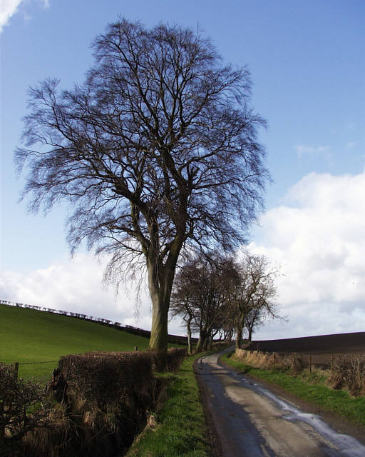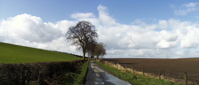 Olympus C-1400L A little side road leading to a couple of houses on the Northern banks of the Firth of Forth near Culross in Fife, Scotland. Taken on a cold Spring afternoon after it had been raining. A panorama made from two frames.