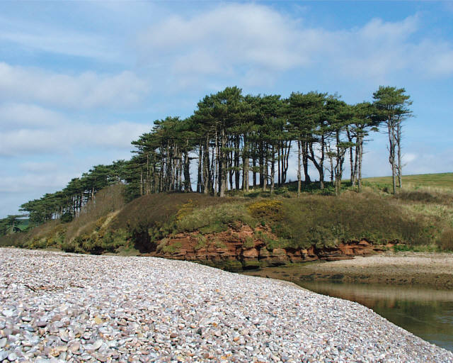 Olympus C-1400L If you walk right to the end of the beach there is a river outlet from the marshes behind the shingle slope. Here the shingle abruptly stops and the characteristic red stone begins.