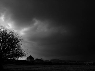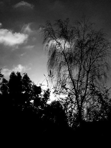 Kodak DC120 This was taken in my back garden, early one morning. I was photographing some other stuff when I turned around and saw this scene behind me. I could see the b+w print in my mind like a flash. I removed the blue channel in the image to highlight the clouds and the red glow from the sun behind the shrubs.